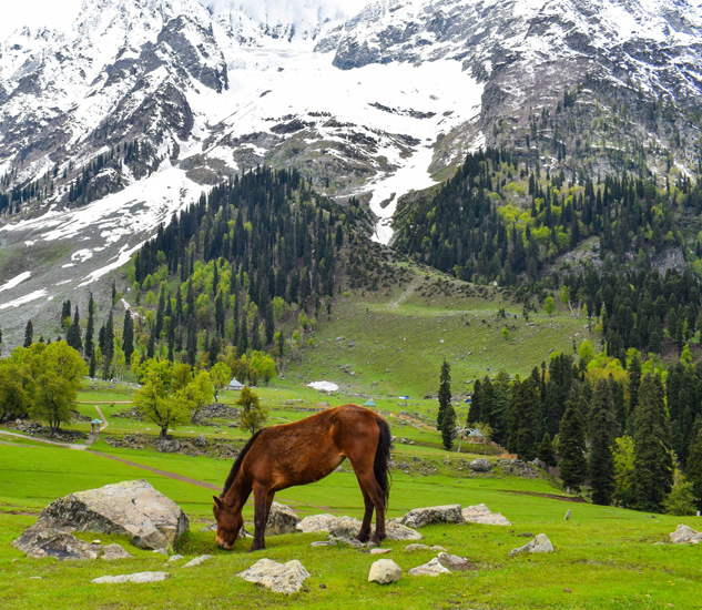 Sonamarg is the next location to visit in Kashmir. Being more than eighty kilometres away from the capital, you can try your hands on horseback riding and trekking, while glancing the unbeatable valleys, mountains and of course some lakes as well that might take your break away. The most prominent attraction of this location is the glacier and only way to reach this location in on horseback, so go ahead and have fund many hours riding on risky hairpin bends and trails.