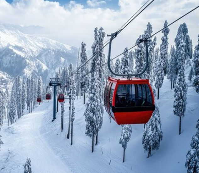 Gulmarg, also called as Meadow of Flowers. Located more than fifty kilometres from Srinagar, the most popular attraction is the Gondola Gulmarg. Of course, the place is also a prime attraction for winter sports, especially skiing. The high-end Gondola rise is splendid, being one of the highest cable cars in the world.
