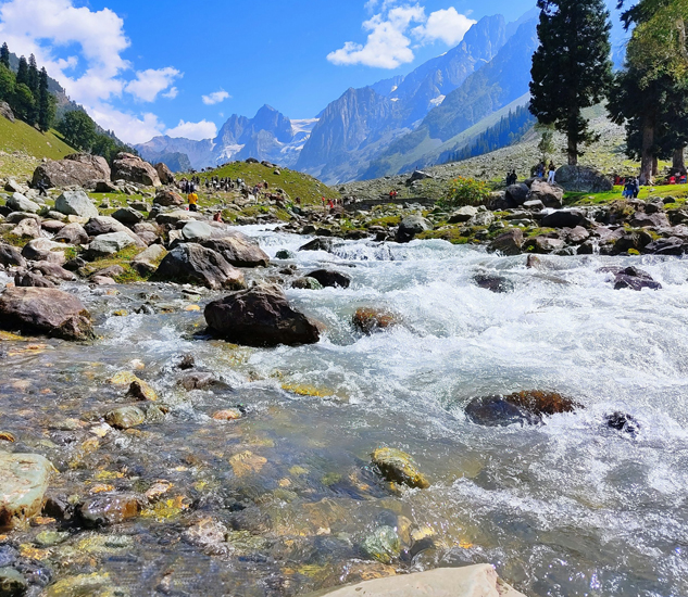 Sonamarg is the next location to visit in Kashmir. Being more than eighty kilometres away from the capital, you can try your hands on horseback riding and trekking, while glancing the unbeatable valleys, mountains and of course some lakes as well that might take your break away. The most prominent attraction of this location is the glacier and only way to reach this location in on horseback, so go ahead and have fund many hours riding on risky hairpin bends and trails.